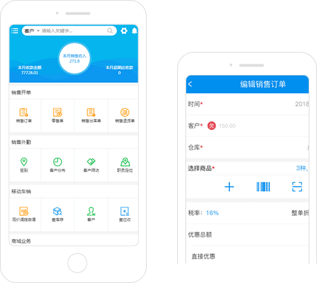 代客下单、移动车销、移动核单、库存盘点,查看库存、往来、资金数据,商城后台处理...手机APP随时随地满足你的业务需要。