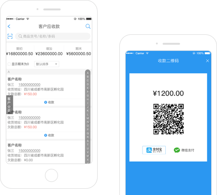 在线查看客户往来数据,欠款明细分享对账,更能移动扫码付款,让往来数据清晰、准确,让收款及时、便捷。